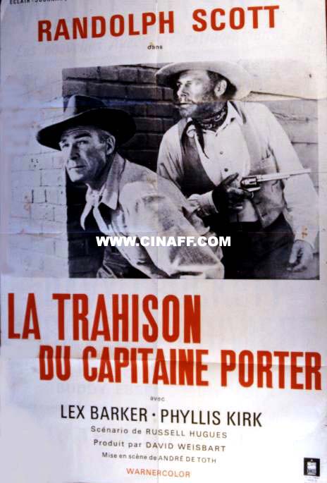 Fess ParkerGenre: WesternStudio: Warner BrothersRésumé: A la fin de le guerre de Sécession, le capitaine David Porter (Randolph Scott) doit faire face à des carpetbbagers. Il est aidé par le capitaine Bill Hodges (Lex Barker). Mais, les deux hommes ne vont pas bien s'entendre.Durée : 1H22